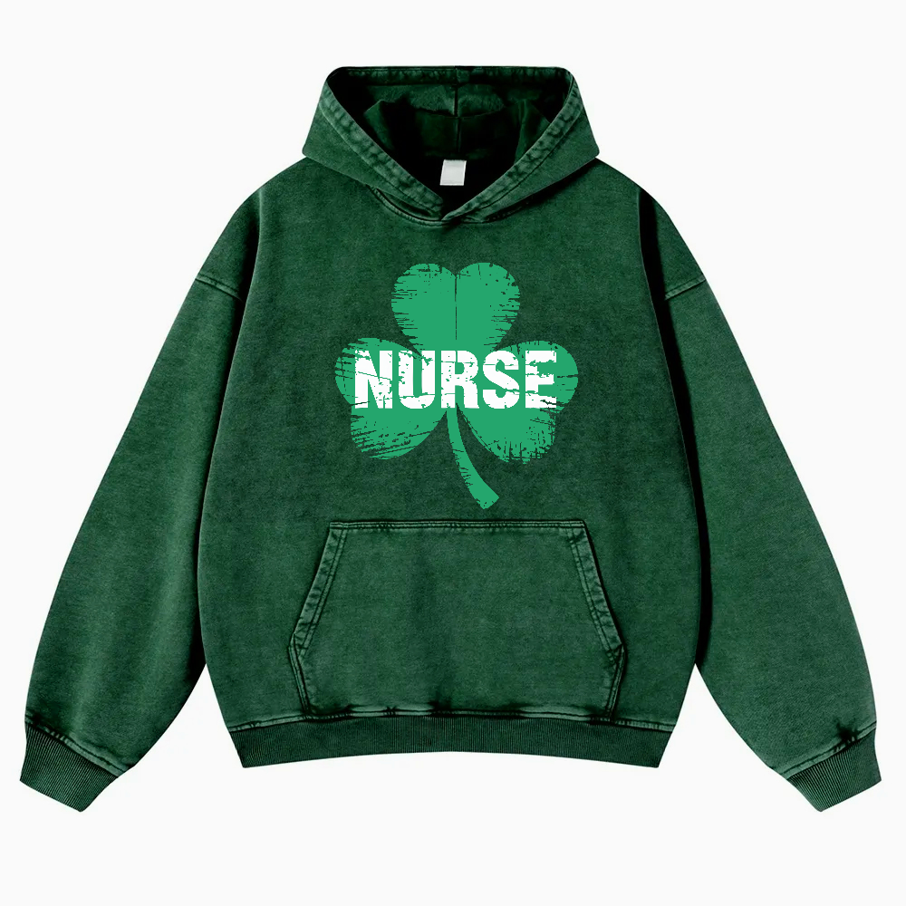 Nurse Irish Shamrock EMT St Patricks Day Vintage Washed Hoodie
