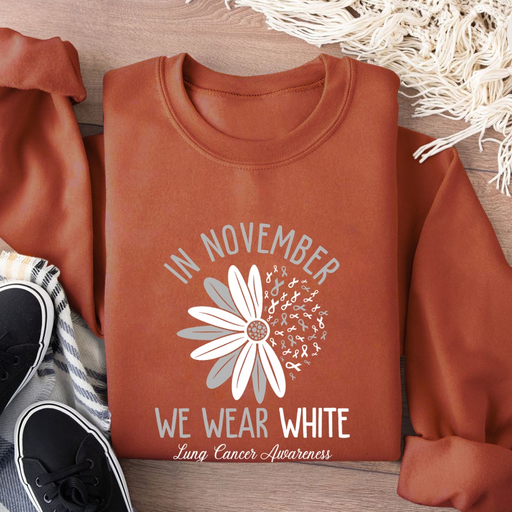 In November We Wear White Lung Cancer Awareness Cotton Pullover Sweatshirt