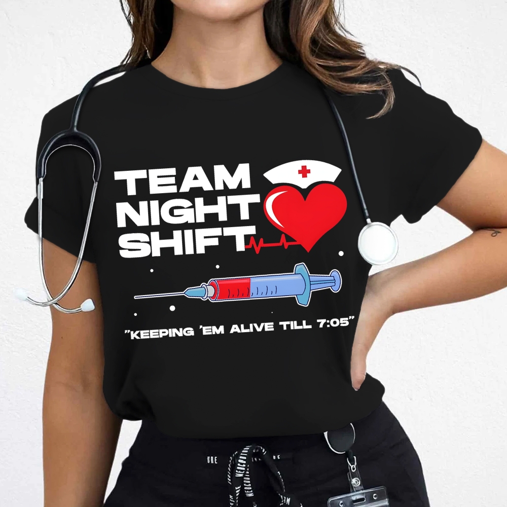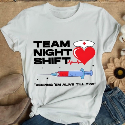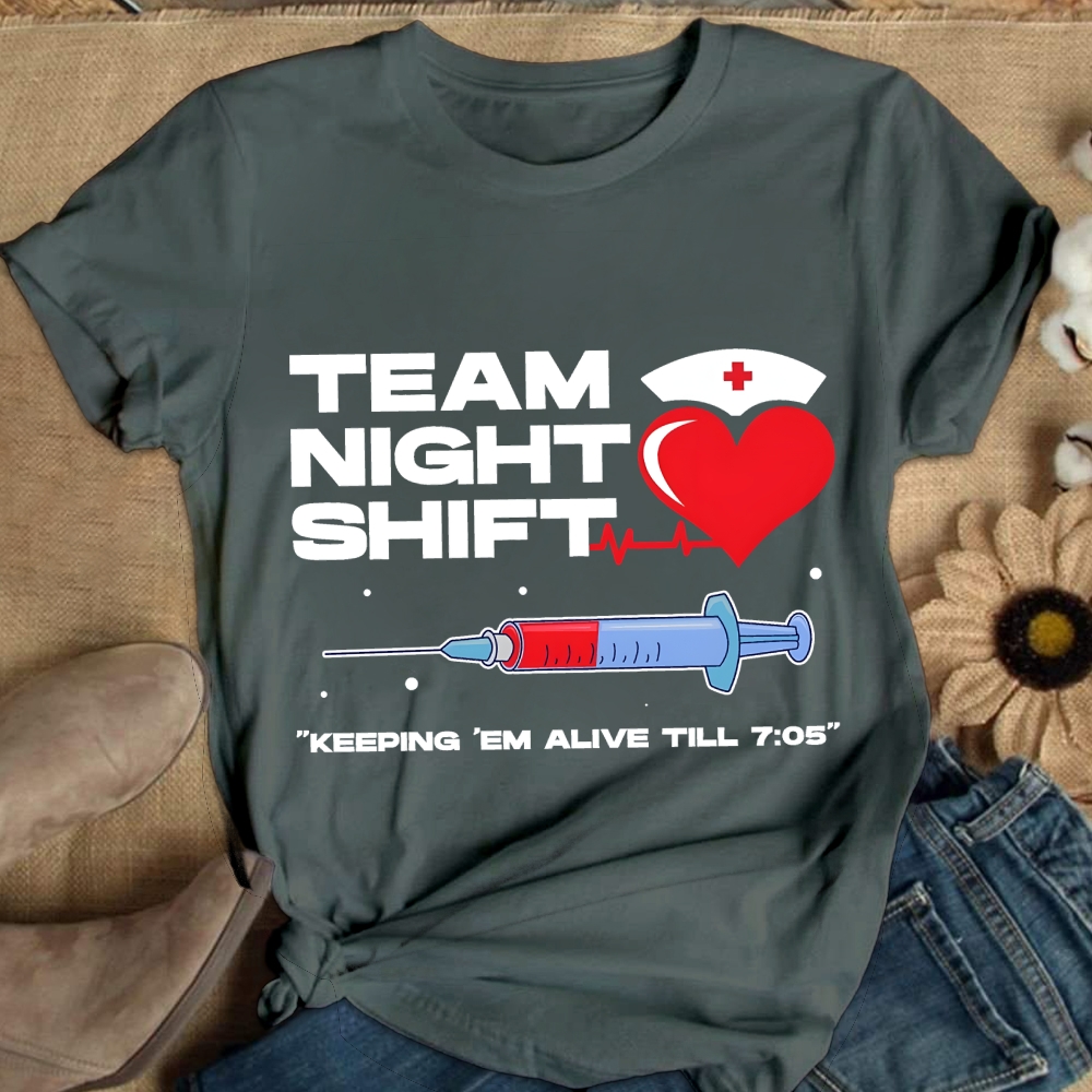 Team Night Shift Keeping Em Alive Till 7:05 Cotton Nurse T-shirt