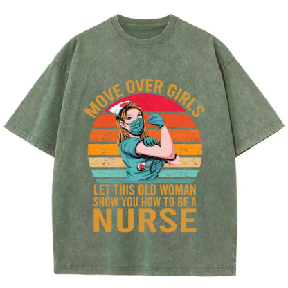 Move Over Girls Let This Old Women Show You How To Be A Nurse Vintage Washed T-shirt