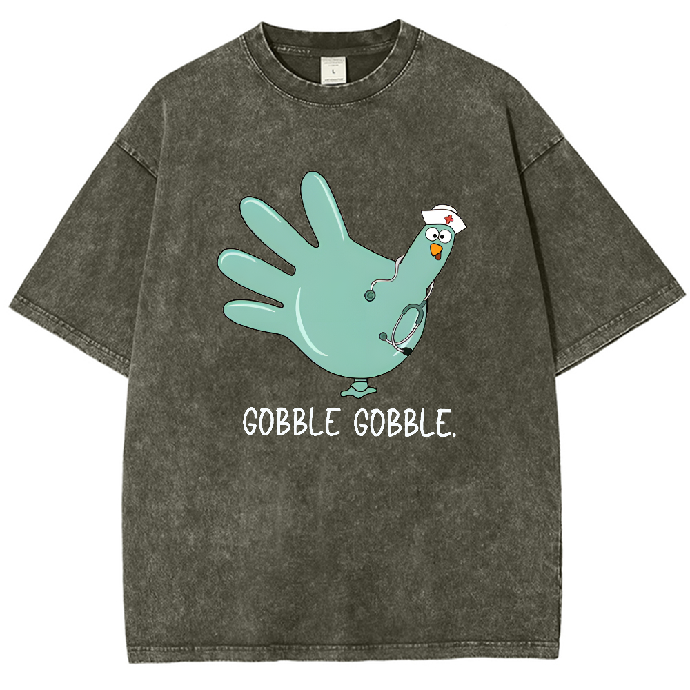 Turkey Gobble Glove Thanksgivin Nurse Vintage Washed T-shirt