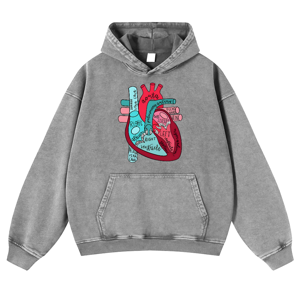 Labeled Anatomical Heart Vintage Washed Hoodie
