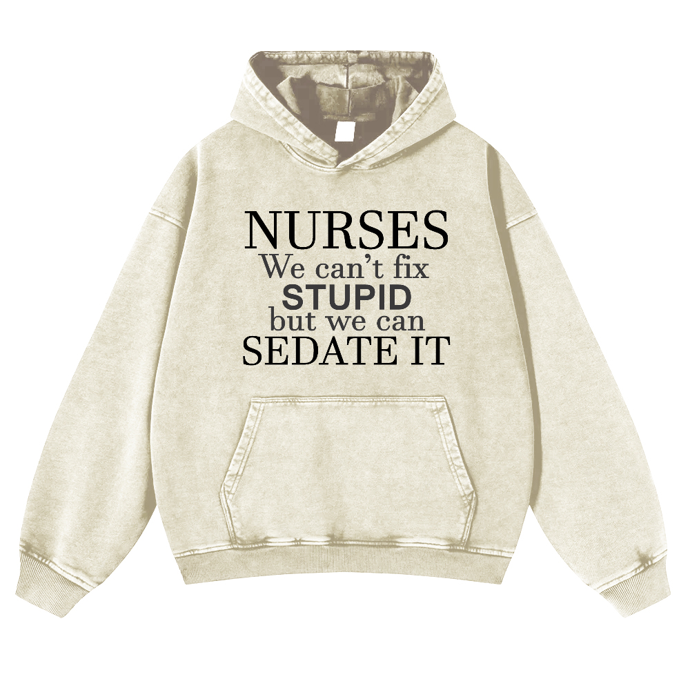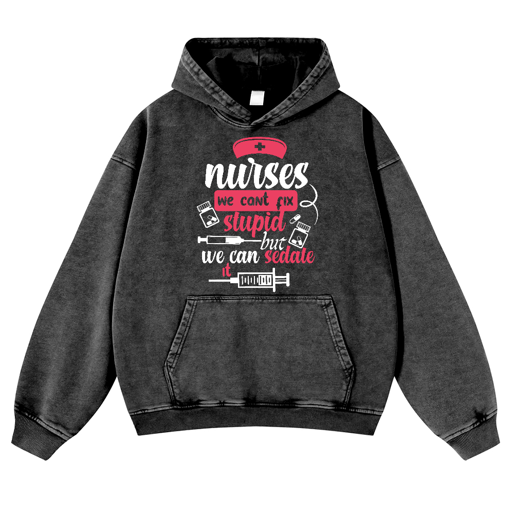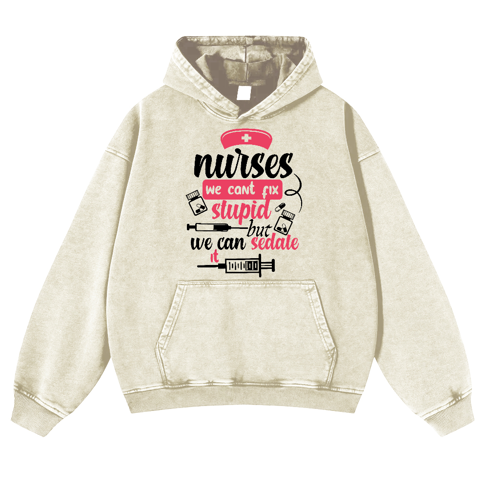 Nurses We Can't Fix Stupid But We Can Sedate It Vintage Washed Hoodie