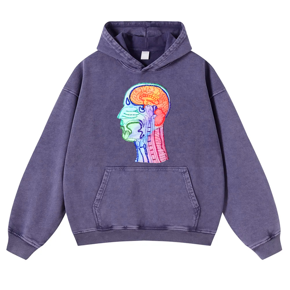 Head And Neck Watercolor And Ink Graphic Vintage Washed Hoodie