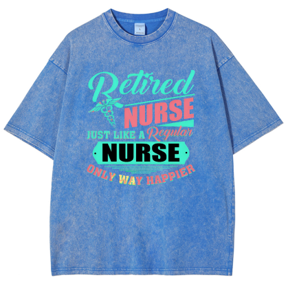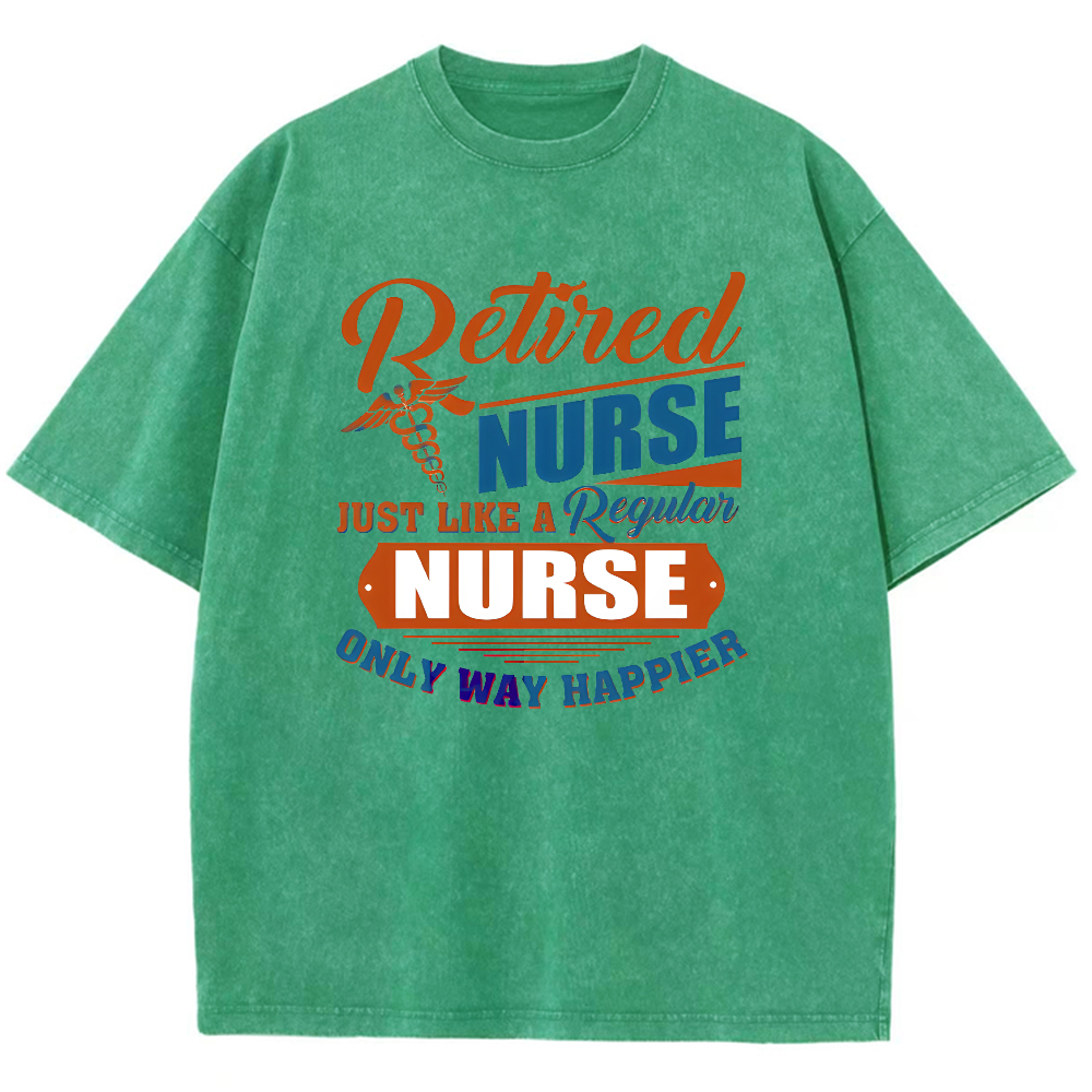 Retired Nurse Just Like A Regular Nurse Only Way Happier Vintage Washed T-shirt