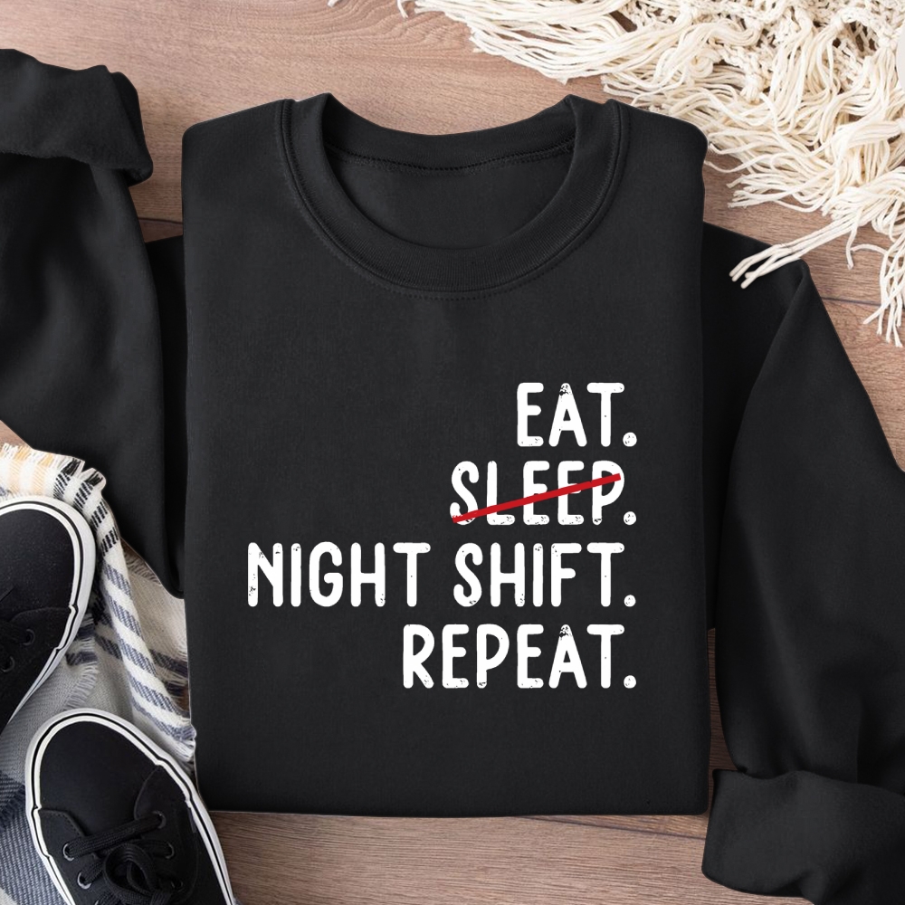 Eat Sleep Night Shift Repeat Cotton Pullover Sweatshirt
