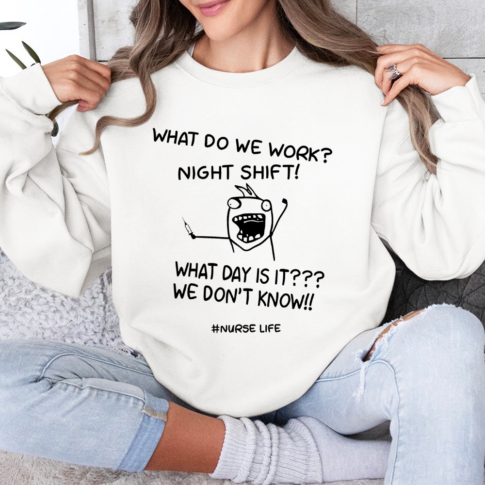 What Do We Work-Night Shift What Day Is It-We Don't Know Cotton Pullover Sweatshirt